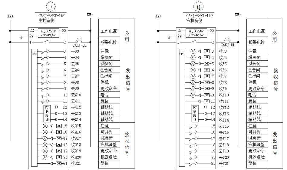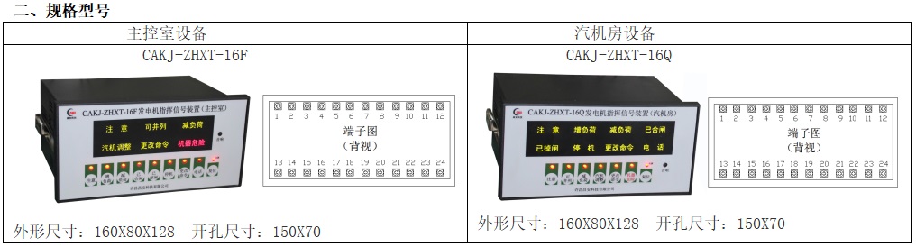 CAKJ-ZHXT-16F/Q 發(fā)電機指揮信號裝置是用于主控室與汽機房之間彼此傳送命令和機組運行狀況的設備。一套完整的指揮系統(tǒng),應在主控室的發(fā)電機控制盤上和汽機控制盤上各裝設一臺相應發(fā)送和接受命令的指揮信號裝置。
