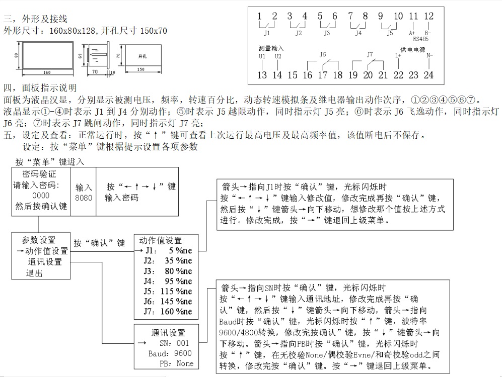 2,測(cè)量頻率:0-99.99HZ,額定頻率ne 50HZ,轉(zhuǎn)速百分比2-200%ne