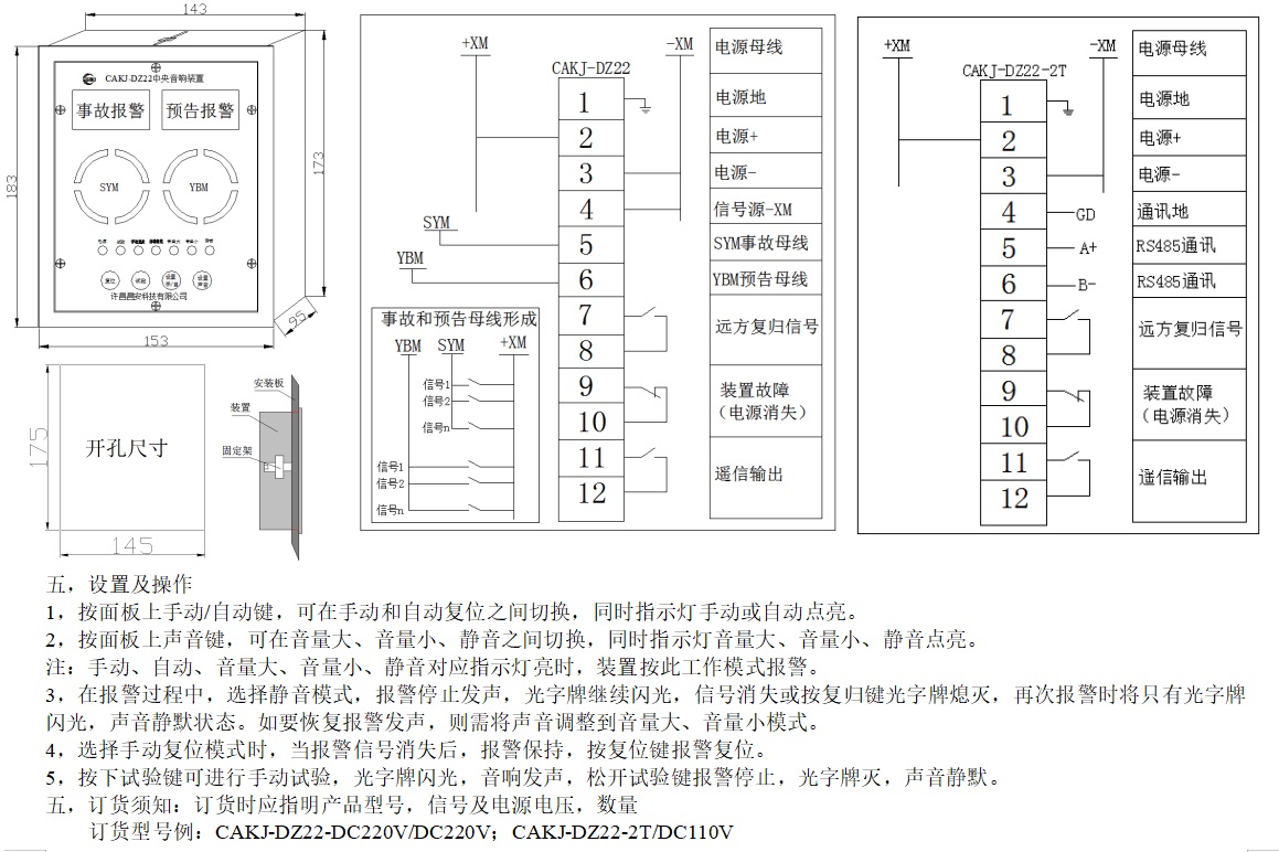 CAKJ-DZ22中央音響裝置,是為電力系統(tǒng)中央信號聲光報警而設(shè)計的一款低功耗、無干擾、大音量電子式報警設(shè)備(音量可調(diào)節(jié),可靜音)。采用單片機模擬電磁式電鈴電笛聲音頻譜,其發(fā)聲與電磁式電鈴電笛發(fā)聲相似度達98%。且具備報警信號保持(自動及手動復(fù)位)及遠程復(fù)歸功能。